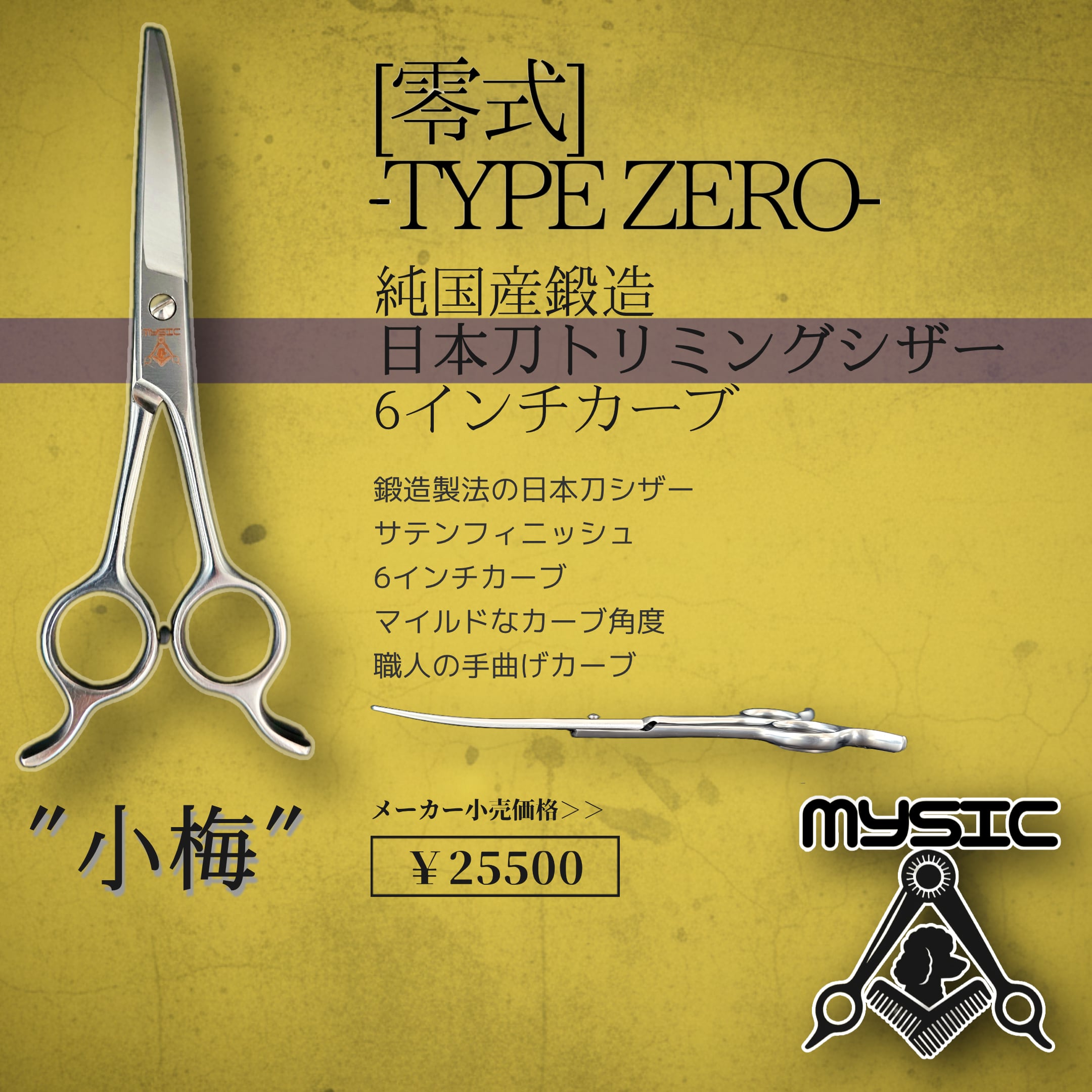 【MYSIC】零式-TYPE ZERO- 純国産鍛造シザー 6インチマイルドカーブ "小梅"