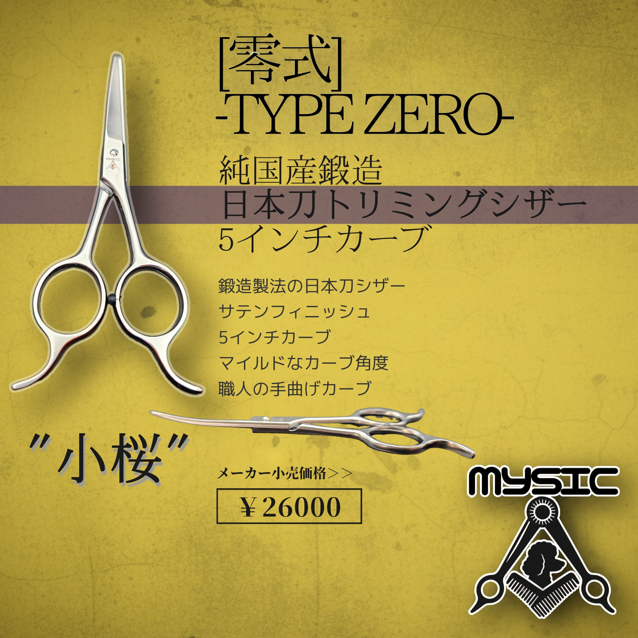 【MYSIC】零式-TYPE ZERO- 純国産鍛造シザー 5インチマイルドカーブ "小桜"