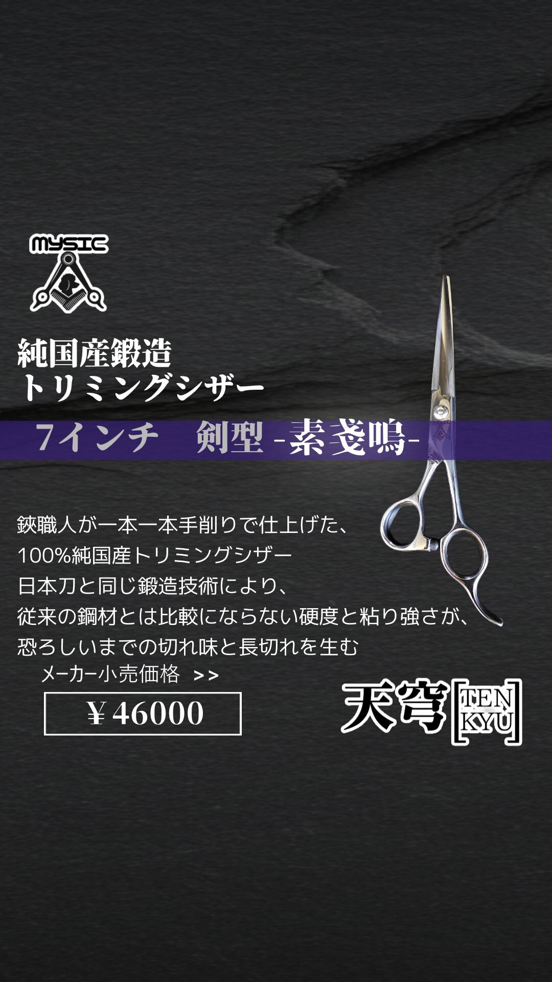 【MYSIC】天穹(TENKYU) ハイグレードモデル 純国産鍛造シザー 7インチストレート 剣刃 "素戔嗚"